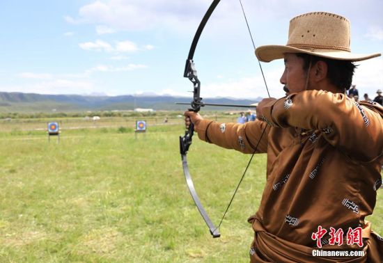 圖為參賽選手瞄準(zhǔn)箭靶瞬間。 趙琳 攝