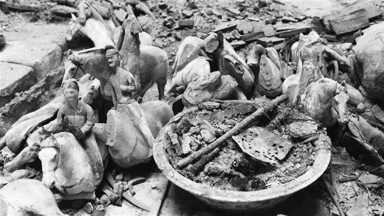 甬道及墓室內(nèi)隨葬品眾多,有彩繪陶、漆木、石、銅、鐵、金銀器及革制和絲麻織品等,共計(jì)220余件組。從發(fā)掘現(xiàn)場(chǎng)來(lái)看,這座墓葬保存非常完整,沒(méi)有被盜和攪擾的痕跡。