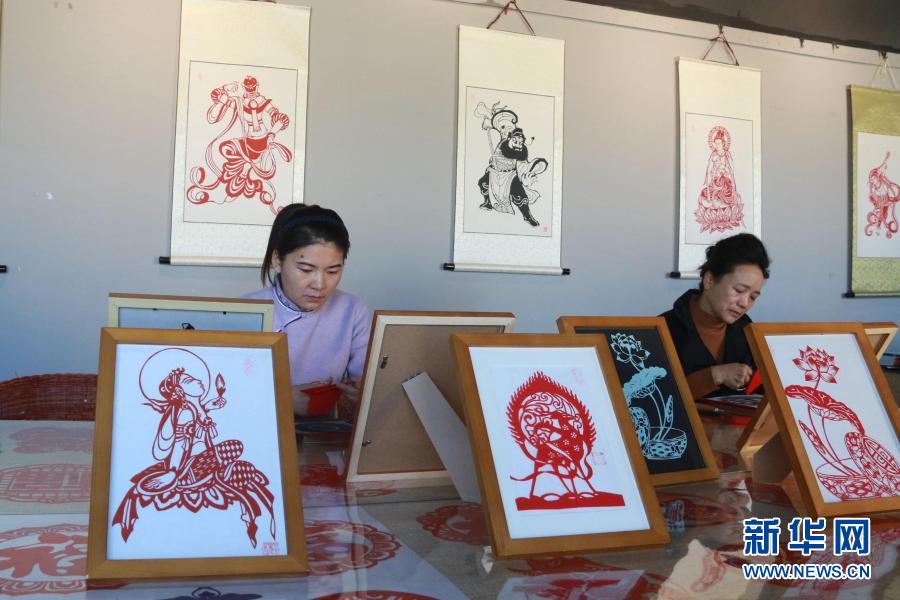 在甘肅敦煌小鎮(zhèn)鳴沙書院,學員在“敦煌剪紙”酒泉市級非物質(zhì)文化遺產(chǎn)代表性傳承人莊生娟的工作室內(nèi)剪紙(2020年12月31日攝)。新華社發(fā)(張曉亮 攝)