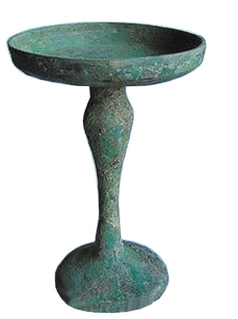 中國古代的照明工具,除掉最原始的火把,最早的是油燈而不是蠟燭,有關(guān)蠟燭的記載是漢代才有的。既然要用油燈,古人用什么器皿來盛放燈油和燈芯呢?人們找來找去,一種名叫“豆”的器皿脫穎而出。“豆”本為上古時(shí)代的一種盛食器,其上為圓盞盤,中間為或長或短的直柄,最下為喇叭或圓足形底座。簡單地說,“豆”的形狀就像高腳盤,一般用陶制,也有青銅或木制的,青銅制的用作祭祀禮器。“豆”的造型,完全符合人們對燈具的基本需求——既有能裝油和燈芯的淺淺的容器,又有方便移動(dòng)的把手。于是,人們就在“豆”的基礎(chǔ)上稍加修改,用陶土燒制出了最初的高腳燈具。