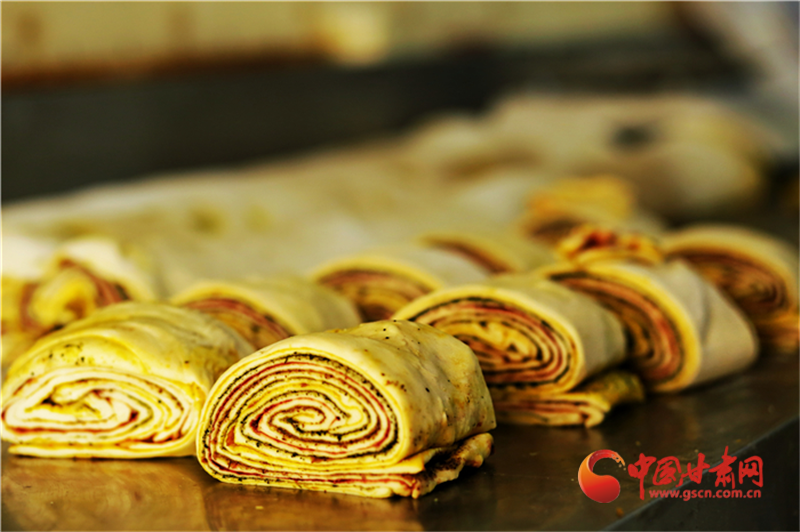 香豆、油酥、姜黃、紅曲、胡麻……最樸實的食材,最傳統(tǒng)的工藝,讓月餅在蒸汽中充分鼓脹,最終飽滿盛開。卷沿彎曲,狀似玫瑰。切開,內(nèi)里豐富,色彩斑斕,如同張掖丹霞,熠彩生輝,包羅萬象。(本網(wǎng)記者 宋芳科 通訊員 張文)