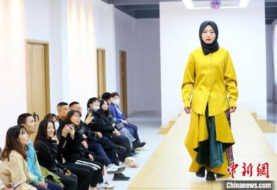 9月26日,甘肅東鄉(xiāng)繡娘身著帶有“東鄉(xiāng)刺繡”元素的民族服飾T臺走秀?!「哒埂z