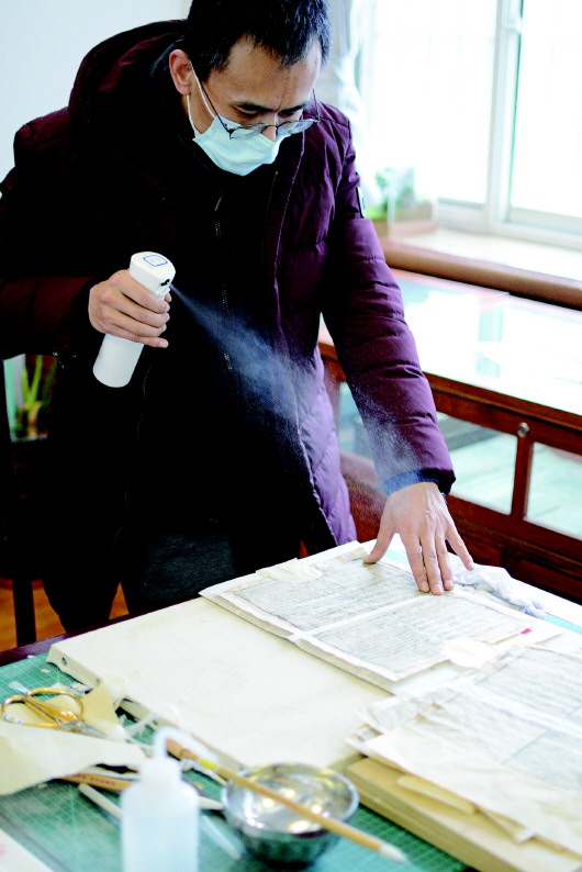 1月5日,記者來(lái)到市圖書(shū)館古籍部,工作人員正在對(duì)破損古籍進(jìn)行全手工修復(fù)。
