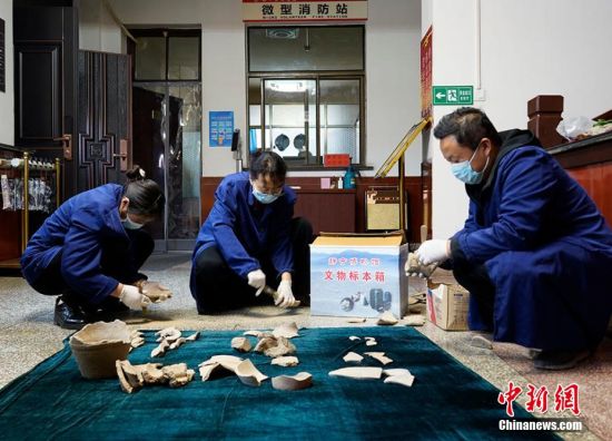 3月9日,甘肅平涼市靜寧縣博物館工作人員根據村民提供線索,在當地賈河鄉(xiāng)竇坪村發(fā)現(xiàn)仰韶文化人首型器口、石器、佩飾、彩陶片、紅陶片等文物標本200余件。靜寧縣博物館工作人員表示,這一重大發(fā)現(xiàn)對研究當地歷史文化有重要意義。 夏劍鋒 攝
