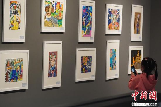 5月15日,甘肅蘭州,市民參觀少兒美術(shù)展覽。當(dāng)日,不少市民和游客來到甘肅省博物館參觀,樂享周末時(shí)光。九美旦增 攝