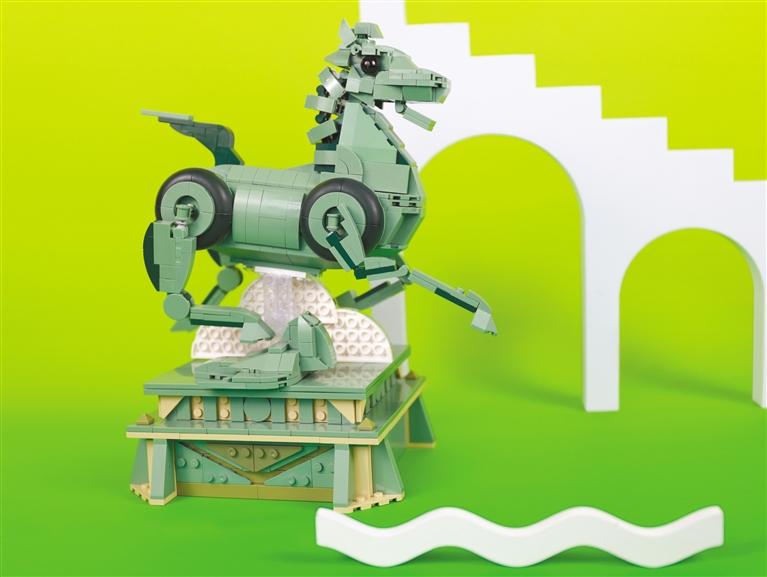 近日,全新打造的銅奔馬立體拼裝積木,更是將時下最流行的積木與銅奔馬跨界融合,用859塊積木還原文物。獨(dú)特的創(chuàng)意思維,讓銅奔馬在當(dāng)下火上加火。
