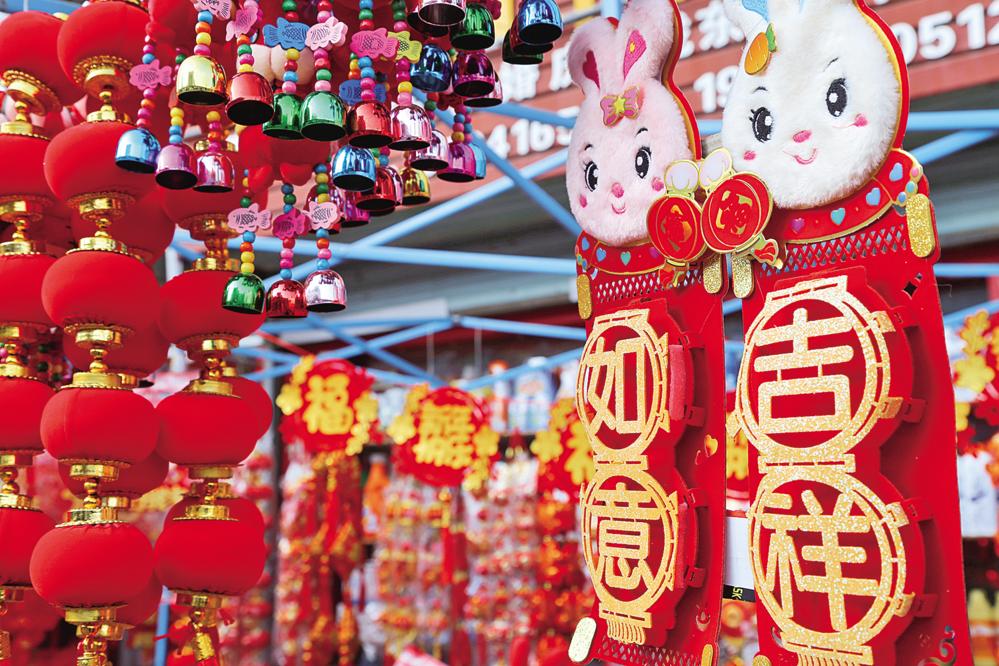 原標(biāo)題:“兔元素”走俏年貨市場 濃濃年味撲面來