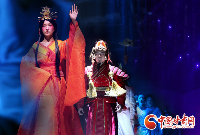 第一表演區(qū)里,T臺一般的大道實(shí)際上是意象化的絲綢之路,走過絲路、穿過黃沙,最令人感動的還是當(dāng)張騫、張儀潮、米薇、王潮歌、叢明玲、張冬、王兒將……這些名字響起時,眾聲回答的那一聲‘在’,意味著今天民族文化的傳承者們同在。