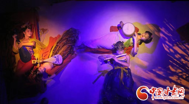 第二表演區(qū)中觀眾將親眼目睹王圓箓送出國寶時的那一幕“心酸”。并在不知覺中被分成十六組進(jìn)入不同的 “洞窟”,與不同時代古人“對談”。行五十步穿越百年,再行百步穿越千年。