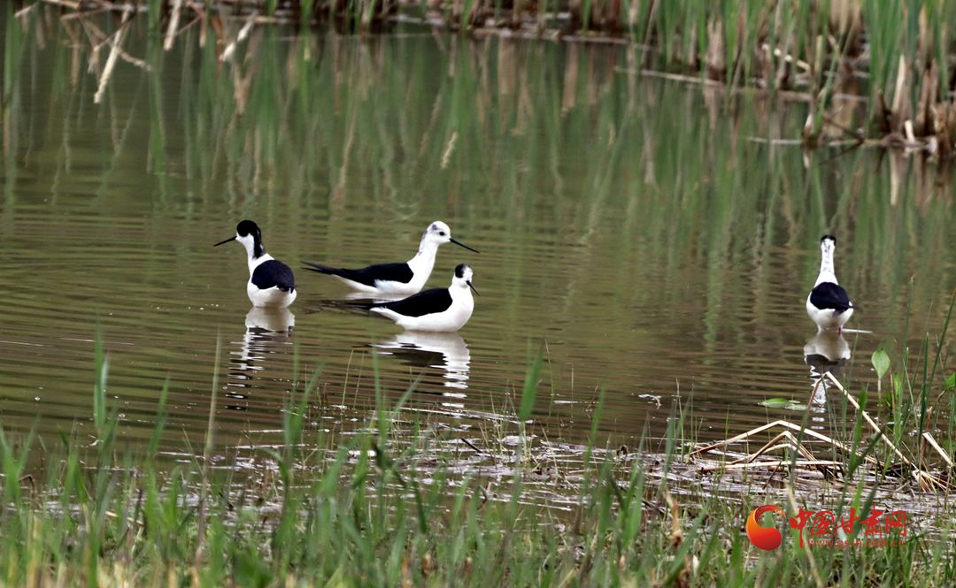 據(jù)了解,這種鳥叫黑翅長腳鷸,是候鳥的一種,春季于4月初至5月初遷來中國北方繁殖地,秋季于9-10月離開北方繁殖地往南遷徙。黑翅長腳鷸是一種涉禽(水鳥中的一類),喜歡成群結(jié)隊,淺水而居,以小昆蟲、小魚、蝌蚪等為食。它還是一種惹人喜愛的水鳥,它的嘴細(xì)長而筆直,體白翅黑,對比分明,身姿綽約、體態(tài)修長,被譽(yù)為“鳥中模特”或者“長腿超模”。