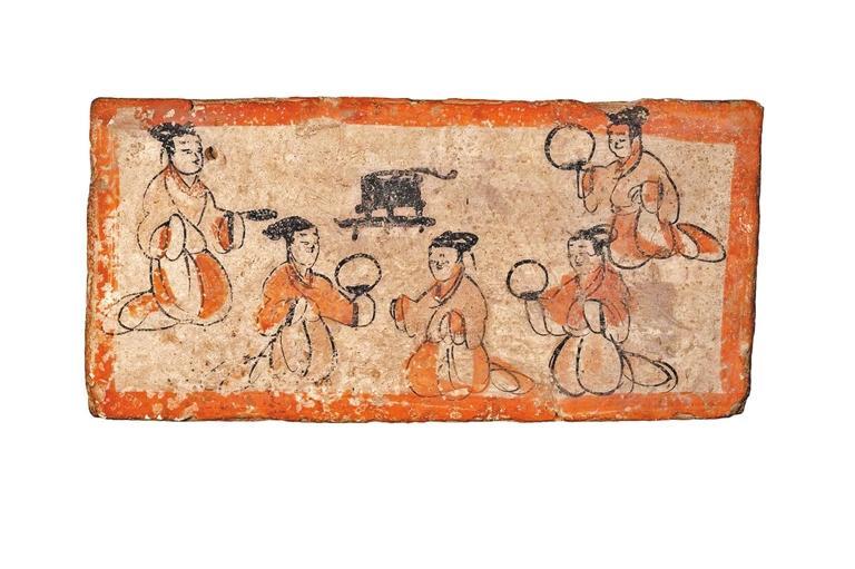 墓磚壁畫描述古人娛樂場(chǎng)景。
