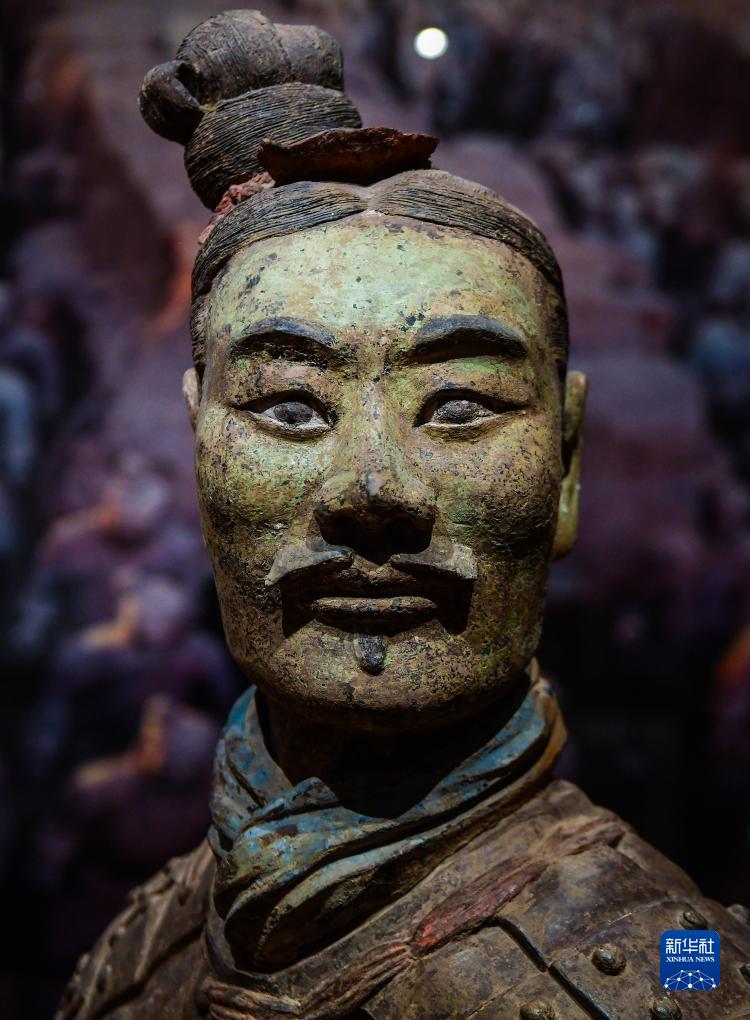 這是秦俑身上彩繪還原修復(fù)后的樣貌(8月23日攝)。