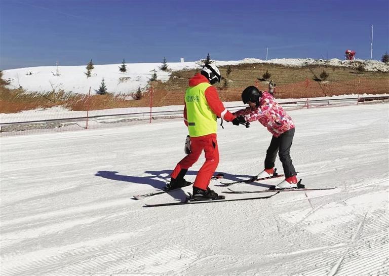蘭州新區(qū)冰雪運(yùn)動(dòng)員訓(xùn)練中心的教練在指導(dǎo)學(xué)員