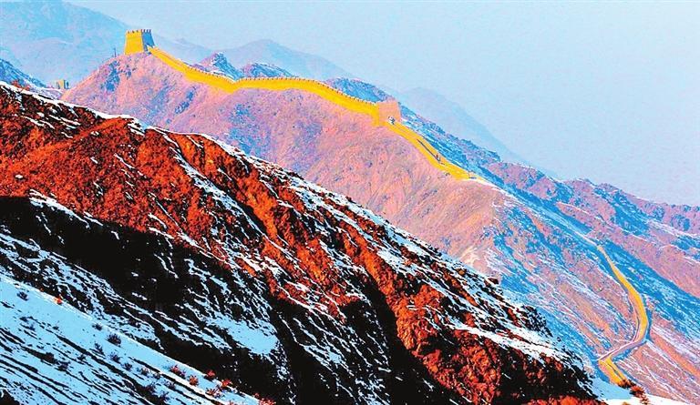 我國的長城與山自古相依相連,有的借山勢呈現(xiàn)出波瀾壯闊的畫面,有的和山體共同延伸向遠處云端,蜿蜒不絕。