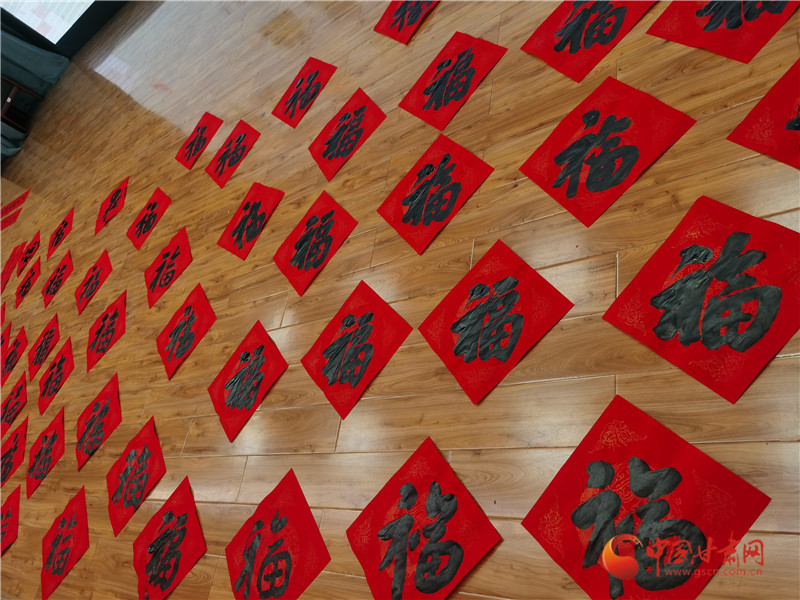 紅福滿地、墨香四溢,群眾們圍攏在書案前,挑選自己喜愛(ài)的聯(lián)句請(qǐng)書法家書寫。書法志愿者們激情洋溢、揮毫潑墨,將濃濃的新春祝福凝聚在筆端,一行行俊秀蒼勁的書法,一副副對(duì)聯(lián),飽含幸福吉祥,寄托美好希望,現(xiàn)場(chǎng)洋溢著濃濃的節(jié)日味道。