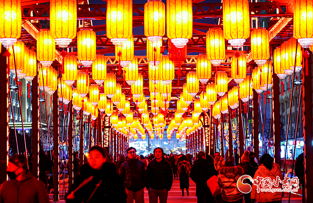 春節(jié)假期,紅紅的燈籠整齊懸掛在蘭州中山鐵橋上,為寒冷的冬日增添了一抹鮮艷的紅色,吸引眾多市民游客拍照打卡。通訊員 侯崇慧 攝