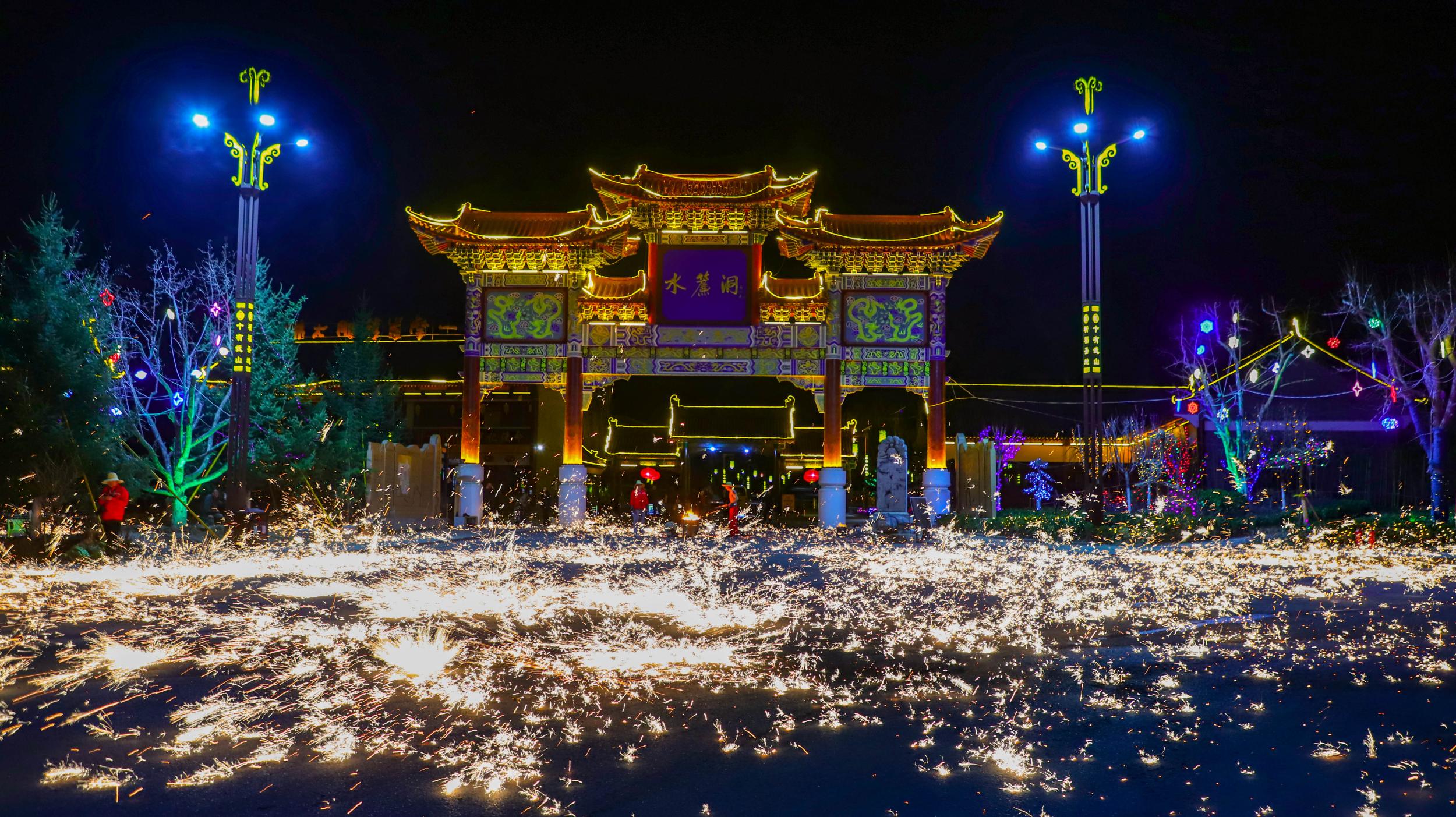 非遺絕技“打鐵花”點(diǎn)靚水簾洞景區(qū)不夜天