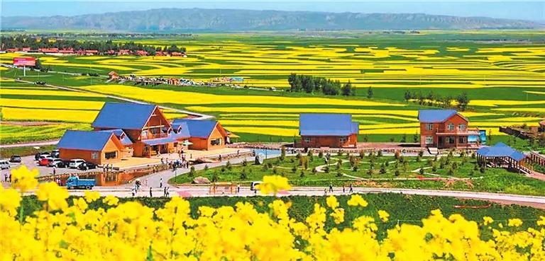 眺望遠(yuǎn)處,一座座大山傲然聳立在半空中,和云朵擦肩而過(guò),山上綠樹(shù)成蔭,空氣十分清新。最美的還是田野,爬上山頂往下看,除了空中飛行的鳥兒,一眼望不到邊的是綠油油的田野。227國(guó)道將村莊分割為東、西兩塊大小不等的地域,金黃的千畝油菜花海,夾雜著大麥、馬鈴薯的碧綠條塊,環(huán)繞在村莊四周。人工栽植的云杉松柏、紫葉矮櫻等苗木高低起伏地相擁在家家戶戶的房前屋后,坐落在油菜花海和綠樹(shù)環(huán)繞中的村莊與小康農(nóng)舍,恰似航船一樣在金黃的花海中漂浮升沉著,煞是美麗。正是這宜業(yè)宜居、可憩可游、美麗愜意的鄉(xiāng)村生活環(huán)境,讓炒面莊贏得“美麗鄉(xiāng)村”示范村和“環(huán)境整潔村”的美譽(yù)。