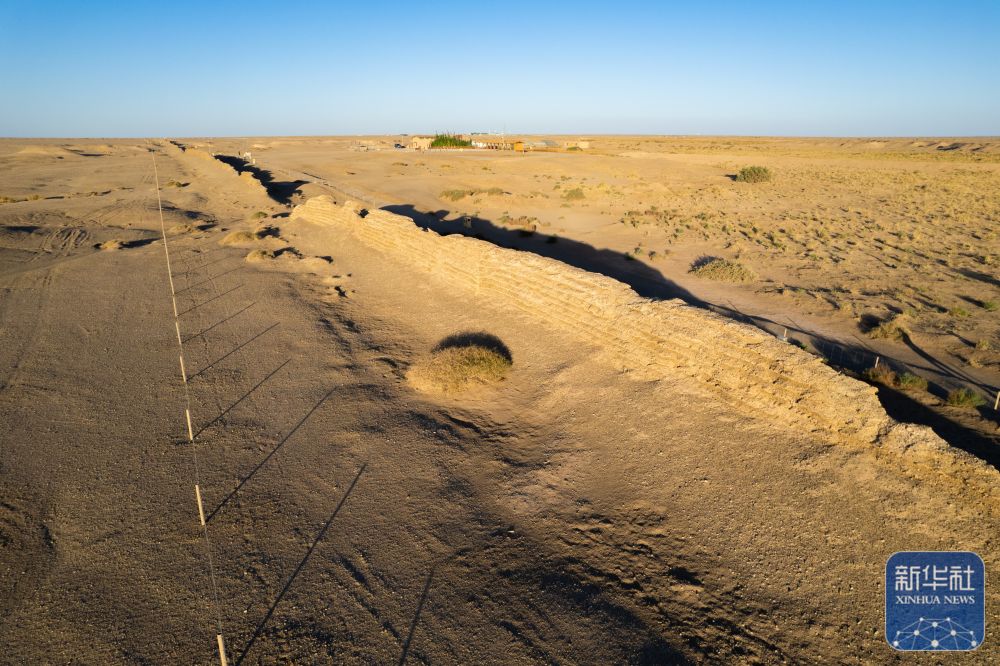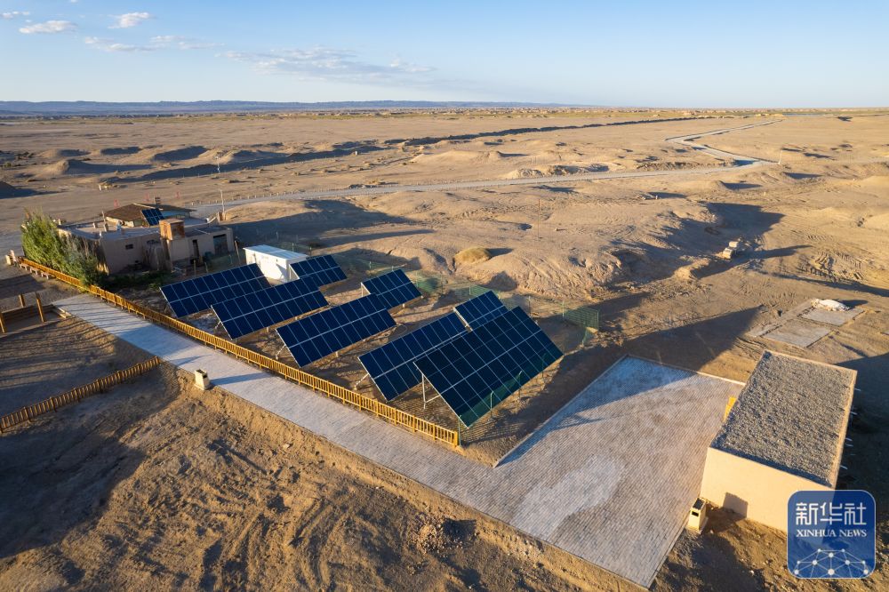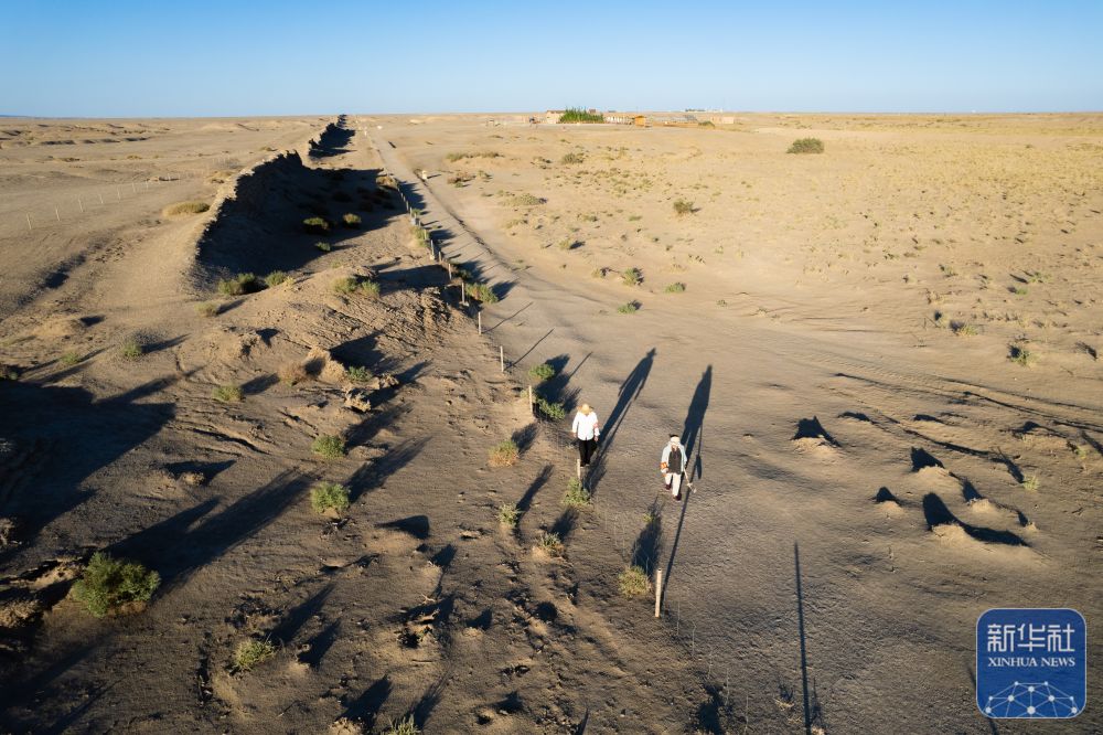 ↑這是張吉全和聞春瑜夫婦工作生活的漢長城文物保護(hù)管理用房(7月16日攝,無人機照片)。