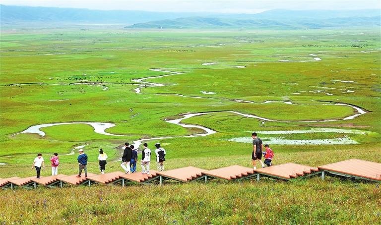 游客在瑪曲縣阿萬倉黃河濕地公園游玩。新甘肅·甘肅日報(bào)記者 田蹊