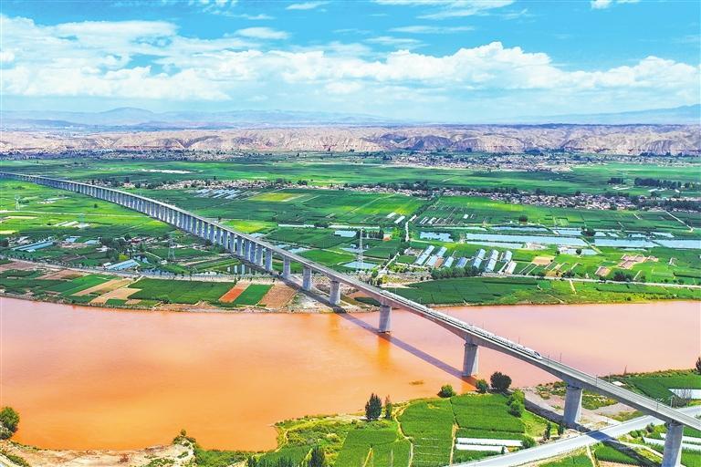銀蘭高鐵靖遠(yuǎn)黃河特大橋。新甘肅·甘肅日?qǐng)?bào)記者 丁凱