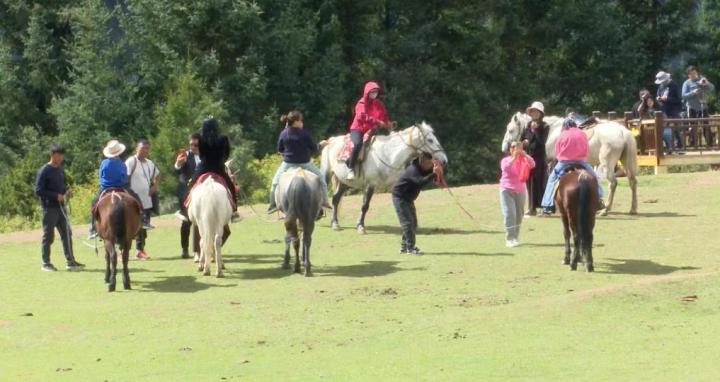 游客在扎尕那景區(qū)內騎馬游覽。(受訪者供圖)