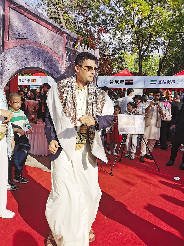 人們或三五成群熱烈交談,或三三兩兩結(jié)伴品嘗不同國家的美食,還有人干脆在美食展臺一側(cè)跳起了歡快的舞蹈,現(xiàn)場氣氛熱烈而融洽。