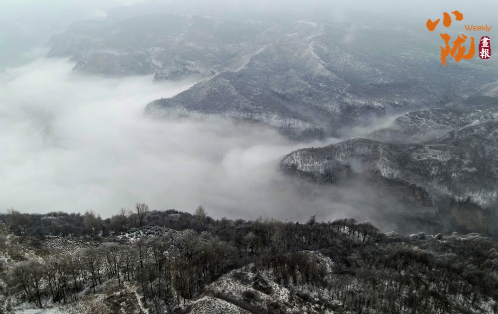 近日,平?jīng)鲇瓉斫穸谝粓?chǎng)雪,雪后崆峒山天地一色,云霧飄渺宛如水墨畫。