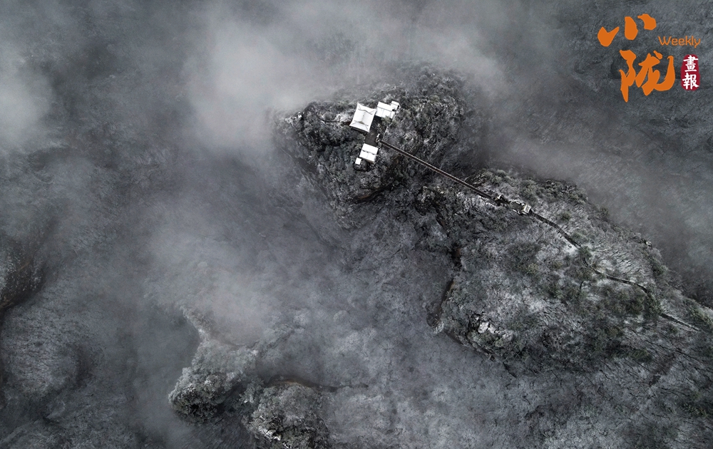 從高空瞭望,目之所及皆為雪林,縹緲的云霧在林間縈繞,時(shí)而蜿蜒迂回,時(shí)而傾泄流動(dòng),勝似仙境!