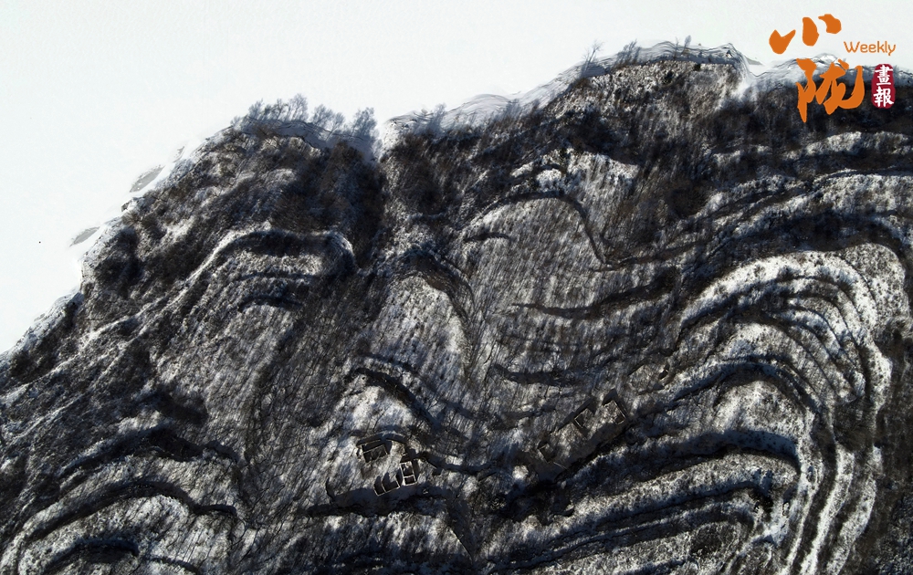 古建筑群在山雪映襯下,更顯古樸、神秘,常青樹木為冬日增添了生機(jī)。