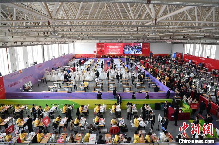 圖為第三屆全國美發(fā)美容行業(yè)職業(yè)技能競賽比賽現(xiàn)場。 九美旦增 攝