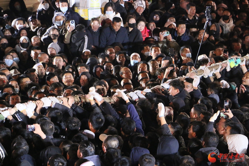 活動現(xiàn)場,一條長達(dá)1808米、重達(dá)16噸的巨繩橫貫西大街,其規(guī)模之宏大令人震撼。活動于正月十四、十五、十六日連續(xù)三個(gè)晚上舉行,每晚三局,共九局。