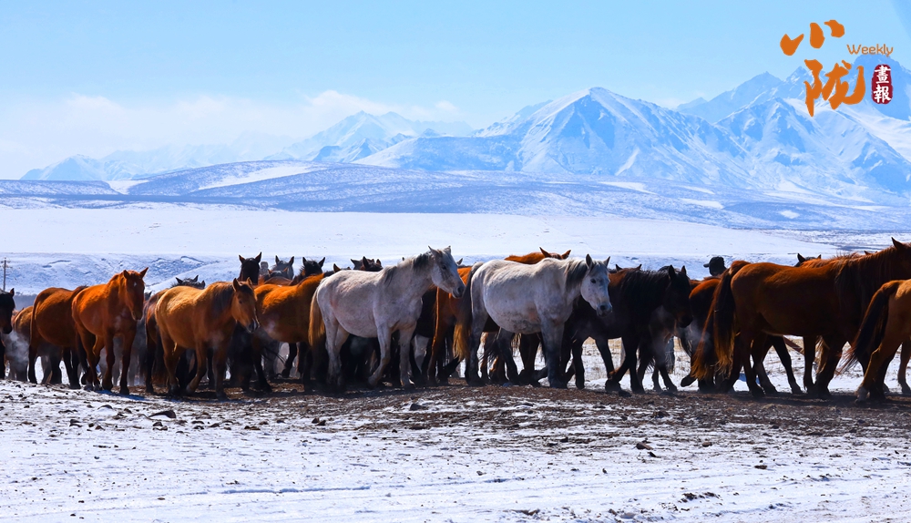 牧民策馬揚(yáng)鞭,驅(qū)趕著馬群在積雪中飛馳。駿馬矯健的身姿如靈動(dòng)音符,奏響春日里激昂旋律。