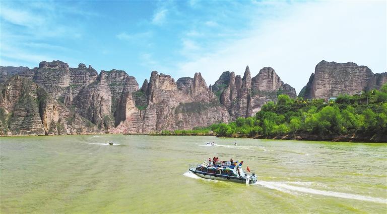 游客在劉家峽水庫乘船游覽。新甘肅·甘肅日報通訊員 史有東