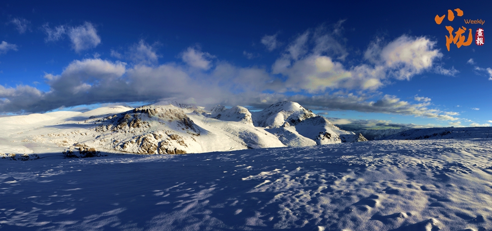 側(cè)目而視,近日一場(chǎng)降雪和夏日閑云相伴相依,近處的雪和遠(yuǎn)處的云相映成趣,共同把天空擦拭得深藍(lán)如鏡。這種“積雪長(zhǎng)留峰素裹,浮云飄忽去無(wú)邊”的夢(mèng)幻景色,會(huì)將你平日里積蓄在心頭的那些世俗凡塵濯洗得干干凈凈,有一種遠(yuǎn)離人世的幻覺(jué)。