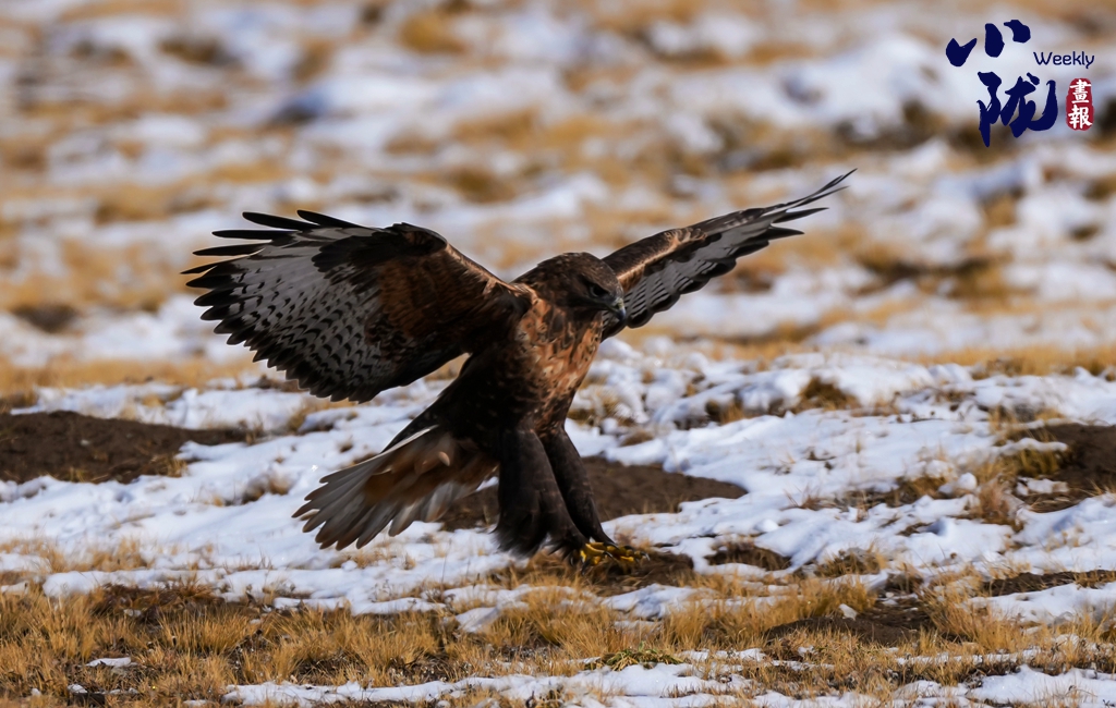 草原雕是國家一級重點(diǎn)保護(hù)野生動(dòng)物,別名草原鷹。外貌兇悍、體形碩大的黃棕色雕,不同年齡階段及不同個(gè)體之間體色差異較大。喙灰色,腳黃色。飛行時(shí)兩翼平直,展開長度可達(dá)200cm,滑翔時(shí)兩翼略彎曲,尾有時(shí)呈形。由于張掖境內(nèi)生態(tài)環(huán)境持續(xù)改善,草原雕已逐漸成為肅南的越冬候鳥,每年11月底到次年4月初,在肅南濕地就能見到它的身影。