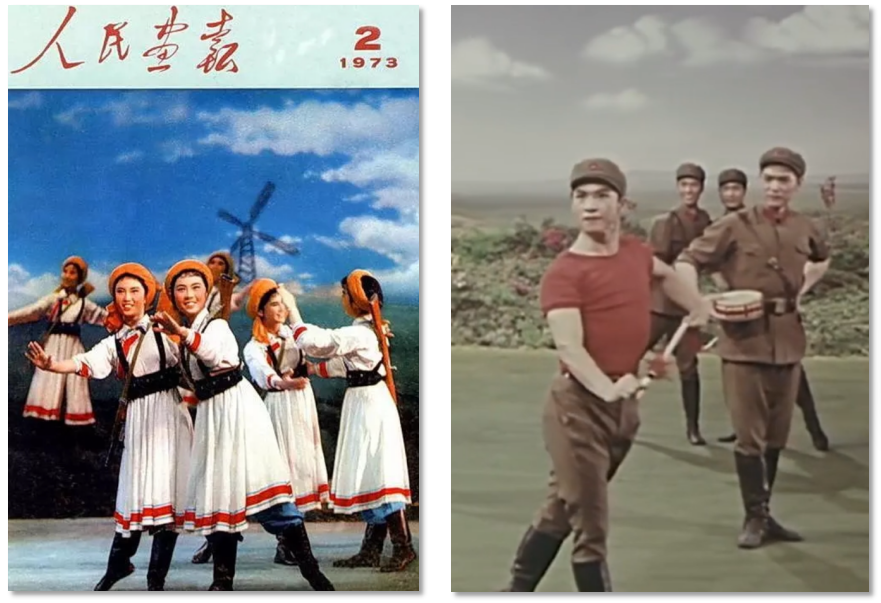軍旅文藝作品在20世紀(jì)70年代迎來了創(chuàng)作高峰期,涌現(xiàn)了《草原女民兵》《戰(zhàn)馬嘶鳴》等一大批經(jīng)典作品,這與當(dāng)時特殊的歷史背景密切相關(guān)。“大約從70年代起,中國的舞蹈創(chuàng)作出現(xiàn)了一個稍稍活躍的狀態(tài)。為了歌頌新生活,也為了活躍舞臺,一些編導(dǎo)被先期‘解凍’,可以有限度地回到工作崗位上來。”人民軍隊與人民群眾需要通過文藝作品這一宣傳媒介,加強(qiáng)軍民一家親的情感聯(lián)結(jié),以此維護(hù)社會穩(wěn)定、軍民團(tuán)結(jié)。