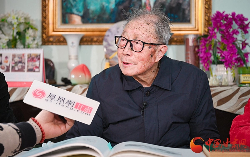 兩度擔(dān)任鐵人秘書的孫寶范(左二)與孫子、外孫接受鳳凰網(wǎng)甘肅頻道采訪。 陳曉斌/攝