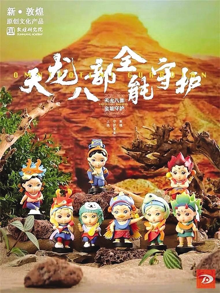 盲盒的設計取自敦煌莫高窟壁畫,特指佛經(jīng)中的八種神道怪物,和金庸的小說《天龍八部》也有人物對照。盲盒包括迦樓羅、乾闥婆、夜叉、摩睺羅伽、帝釋天、緊那羅、阿修羅、那伽八大護法神形象。這也是繼故宮、河南博物院、三星堆博物館之后,敦煌研究院又推出盲盒。