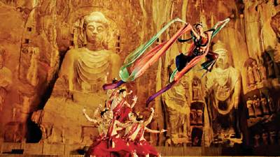 為此,主創(chuàng)人員對龍門石窟中生動多樣的藝術(shù)造型進行了全面梳理。“我們請教專家,翻閱、學(xué)習(xí)大量典籍,深入理解龍門石窟‘伎樂天’形象;同時把握龍門‘金剛’不同于云岡石窟、敦煌壁畫的特點,它更為‘中國化’,更加樸實、有力量。”李鵬說,團隊在此基礎(chǔ)上,進一步進行藝術(shù)化處理,編排成舞蹈,做到“每一個造型定格時,體態(tài)在龍門石窟中都有據(jù)可依,可以找到原型”。