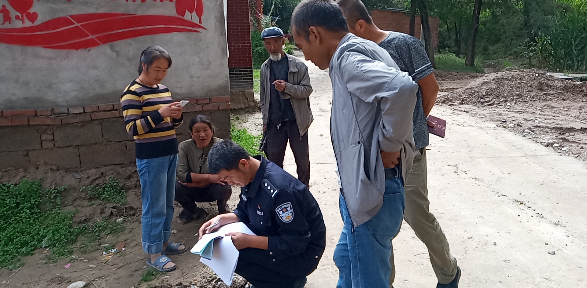 康樂(lè)縣公安局附城派出所城東社區(qū)警務(wù)室民警在轄區(qū)采集基礎(chǔ)信息。(2019年8月拍攝)城東社區(qū)警務(wù)室供圖