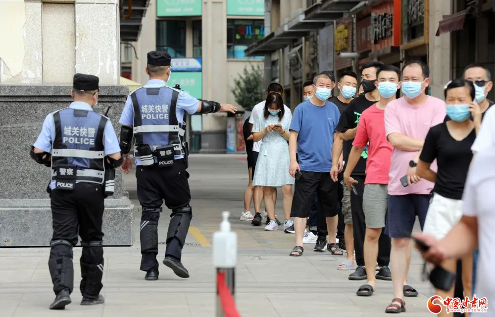城關(guān)公安快警發(fā)揮機(jī)動優(yōu)勢,在轄區(qū)各核酸采集點開展秩序維護(hù)安全守護(hù)等工作。楊 釗/攝