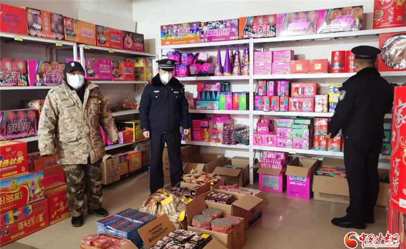 鎮(zhèn)原縣公安局城關(guān)派出所民警對轄區(qū)煙花爆竹銷售點(diǎn)、儲(chǔ)存庫區(qū)開展安全檢查
