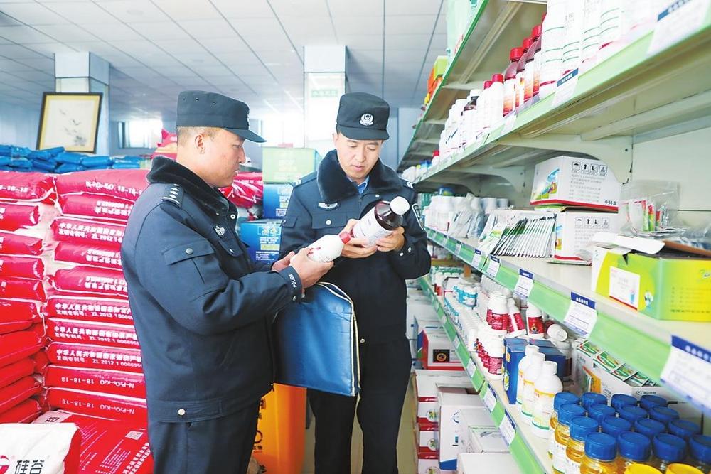 民警在核查農(nóng)藥安全信息。2月28日,定西市公安局安定分局民警開展農(nóng)資市場檢查,從源頭把好農(nóng)資入口關(guān),為春耕生產(chǎn)保駕護航。新甘肅·甘肅法治報通訊員楊永剛攝