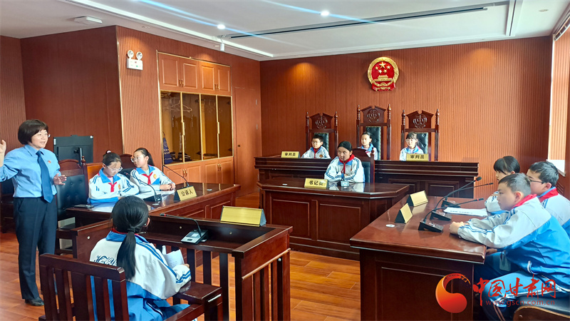 同樣,7月4日,在“崗拉梅朵”未成年人法治教育基地,也有一場(chǎng)模擬法庭庭審在進(jìn)行,來自合作一小五年級(jí)的學(xué)生在這里開庭審理一起盜竊案。
