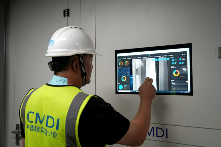 中國移動(甘肅.慶陽)數(shù)據(jù)中心N01新型工業(yè)化數(shù)據(jù)中心工作人員正在進行設(shè)備檢查。慶陽融媒供圖