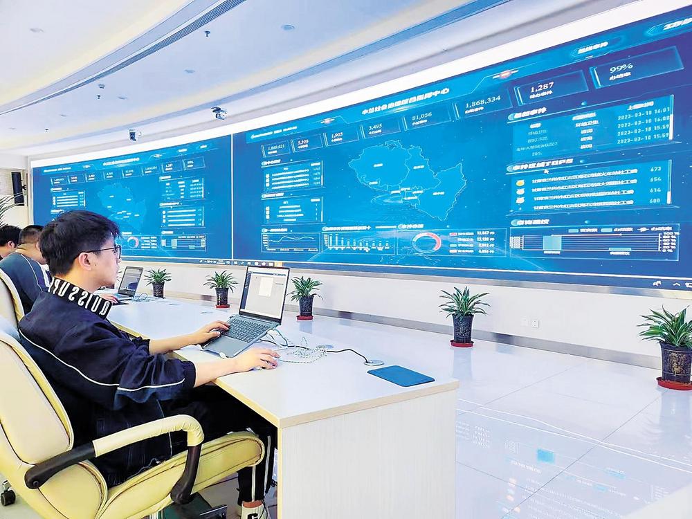 蘭州市社會治安綜合治理中心工作人員實(shí)時關(guān)注“民情地圖·小蘭善治”平臺。