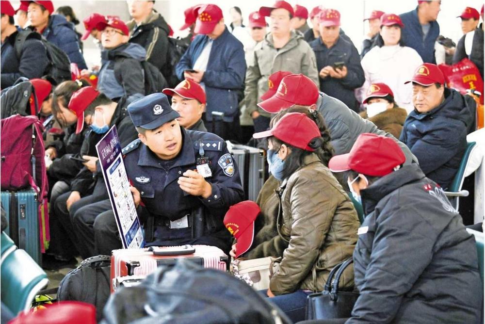為了保障務(wù)工人員安全順暢出行,蘭州鐵路公安處定西北站派出所積極與定西北車站、客運部門通聯(lián),專門開辟“綠色通道”,暢通進站、安檢、檢票等乘車環(huán)節(jié),劃定專門候車進站區(qū)域,增派警力引導(dǎo)務(wù)工人員有序進站。