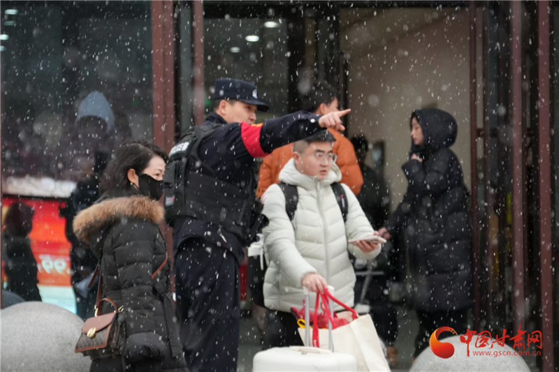 春運(yùn)期間,天水普降大雪,天水南站派出所民警加強(qiáng)警力部署,在站前廣場(chǎng)開(kāi)展為民服務(wù)