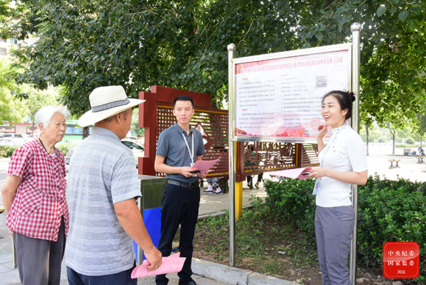 河北省邯鄲市永年區(qū)紀(jì)委監(jiān)委在村委會(huì)、醫(yī)院、公園等公眾場所懸掛公示牌,向群眾發(fā)放告知書,對群眾身邊腐敗和作風(fēng)問題整治內(nèi)容進(jìn)行現(xiàn)場講解,提高群眾知曉率。(河北省邯鄲市永年區(qū)紀(jì)委監(jiān)委 朱照坤 攝)